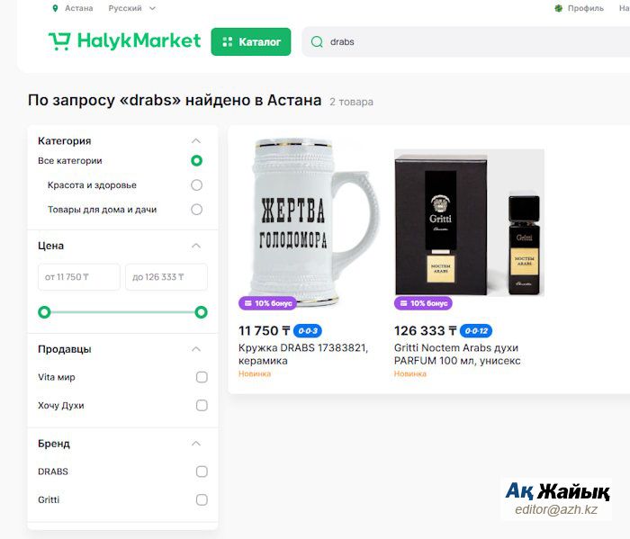 На маркетплейсе Halyk Market пользователи обнаружили товар, вызвавший резонанс в социальных сетях. Один из продавцов из Павлодара выставил на продажу пивную кружку с надписью «Жертва голодомора». Стоимость изделия указана на уровне 11 тысяч тенге.