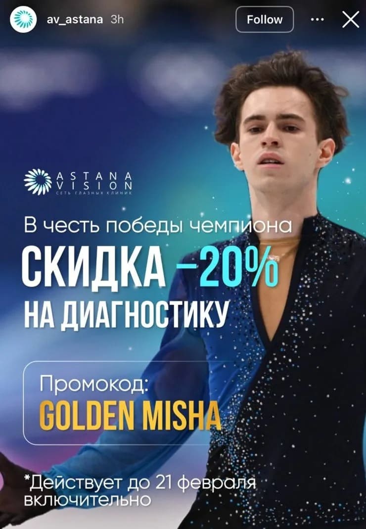 После триумфа фигуриста бизнес отреагировал мгновенно. Кафе, магазины косметики, пиццерии, онлайн-сервисы и другие компании начали публиковать в соцсетях специальные предложения со скидками в честь чемпиона.