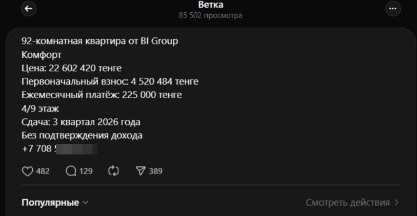«92 комнаты» за 22,6 млн тенге: как объявление о квартире взорвало Threads