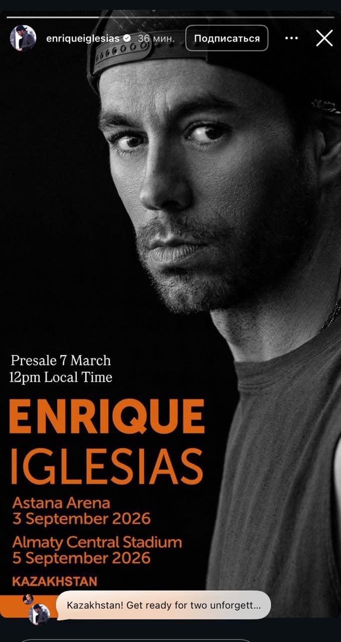 Один из самых известных латино-поп артистов мира, Enrique Iglesias, выступит в Казахстане. Музыкант подтвердил, что осенью 2026 года даст два концерта в крупнейших городах страны, передает Finratings.kz.