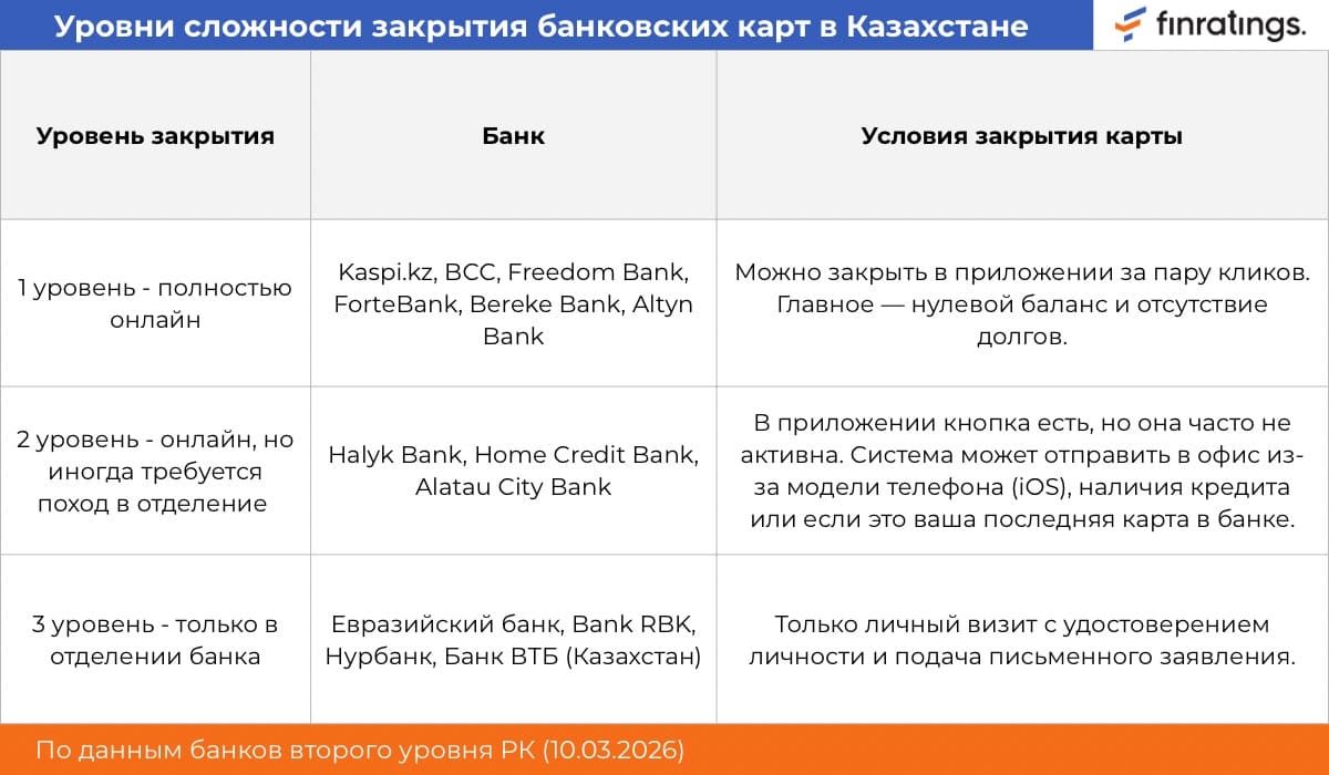 Finratings.kz изучил правила крупнейших банков и выяснил, где карту можно закрыть дистанционно, а где без визита в банк не обойтись.
