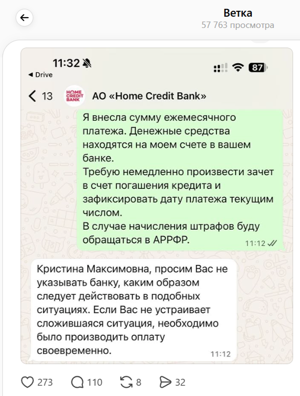Таким образом, конфликт связан с техническими и правовыми ограничениями при просрочке кредита. В подобных случаях средства могут быть заблокированы до завершения всех процедур, что создает у клиентов ощущение двойного списания.