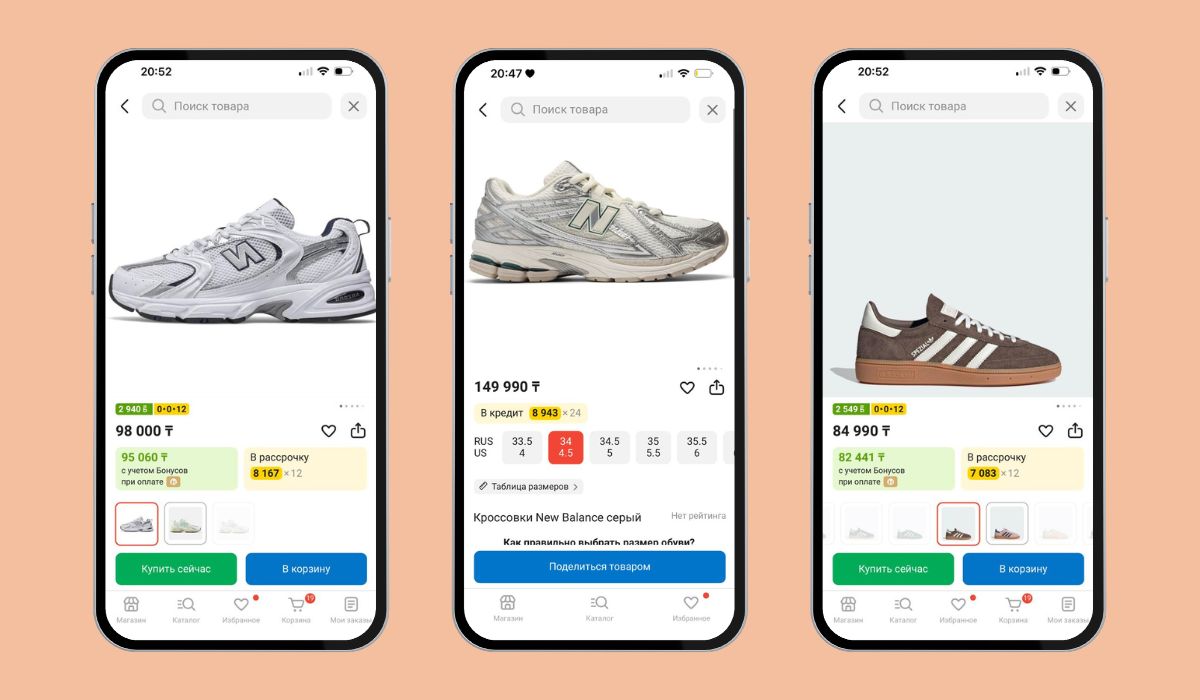 Самая показательная история — с New Balance 1906R. На Kaspi они продаются за 149 990 ₸, что при текущем курсе равно примерно $318. Официальная цена в американских магазинах — $155–160. То есть казахстанский покупатель платит вдвое больше.
