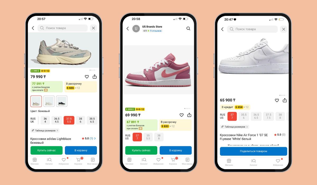 Для adidas Court или Air Force 1 картина другая: экономия составит 0–3 000 ₸, а при неудачной логистике можно и переплатить.