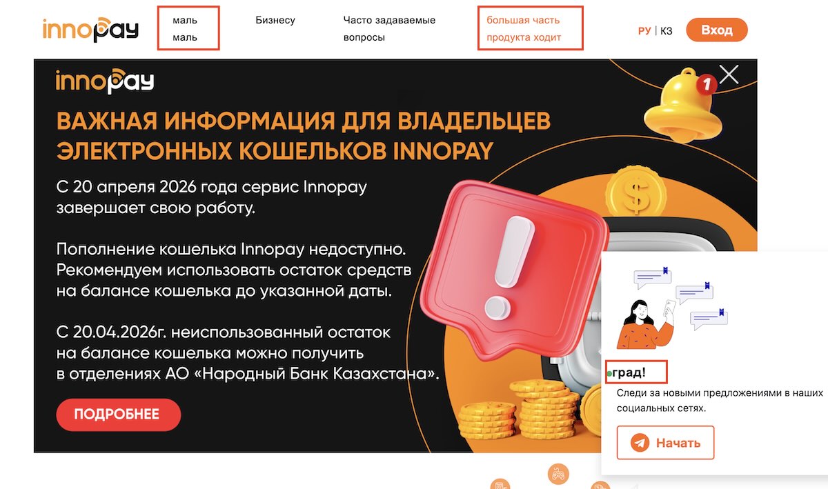 Косвенно на это указывает и состояние самого интернет-портала Innopay: битые ссылки, орфографические ошибки в текстах, явные следы давно не обновлявшегося сайта. Когда продукт живёт и растёт — его страницу поддерживают.