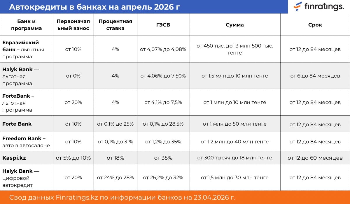 Сравнение условий банков Казахстана по состоянию на апрель 2026 года.