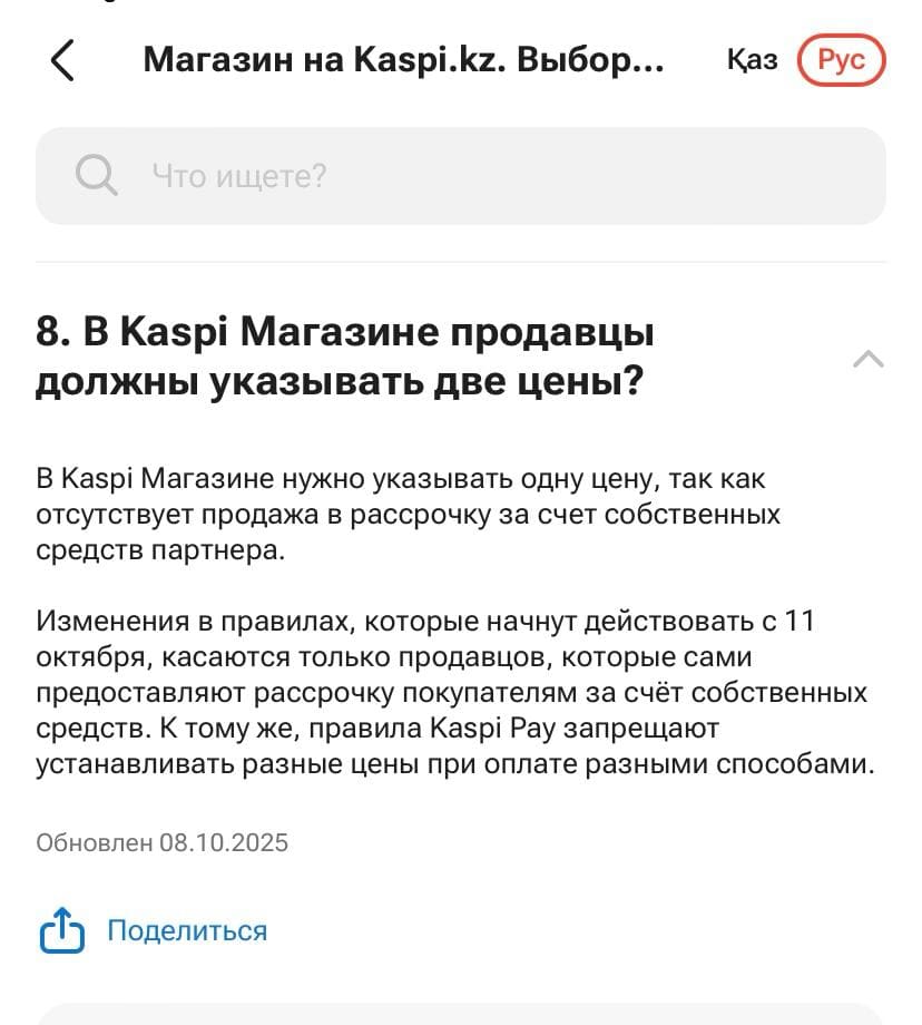 Аргумент компании прост: рассрочка через Kaspi.kz – это не услуга продавца, а банковский продукт платформы.