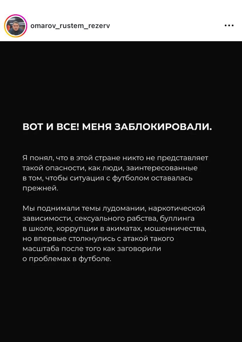 B своем обращении Омаров упомянул и другую деталь – после выхода его нового сериала Offside его страницы в Instagram и YouTube внезапно оказались заблокированы. Причин никто не объяснил. По словам режиссера, все это случилось буквально через пару дней после премьеры.