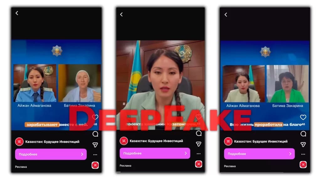 “В новом дипфейке тональность и манера подачи повторяют предыдущие подделки, где Аймаганову также пытались представить «амбассадором» различных псевдо-инвестиционных проектов. Как и раньше, изображение и голос созданы искусственно – реальных интервью или заявлений на эту тему не существует”, – сообщает источник.
